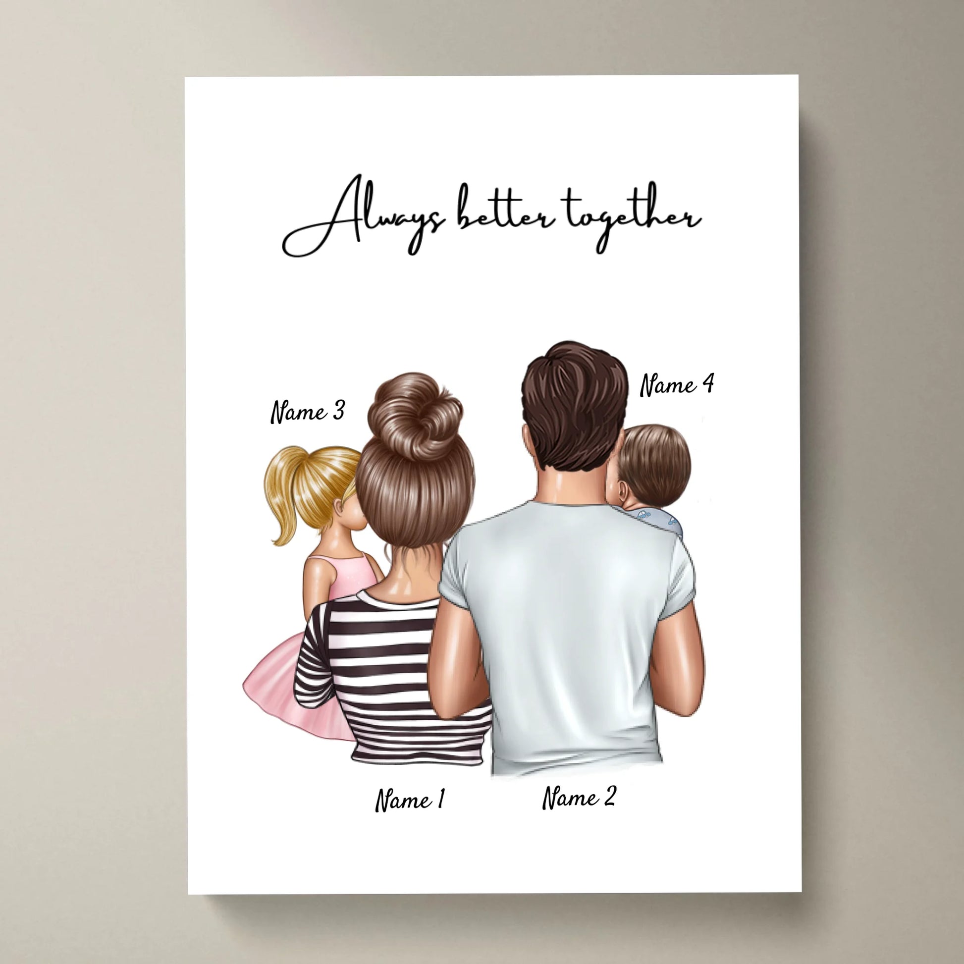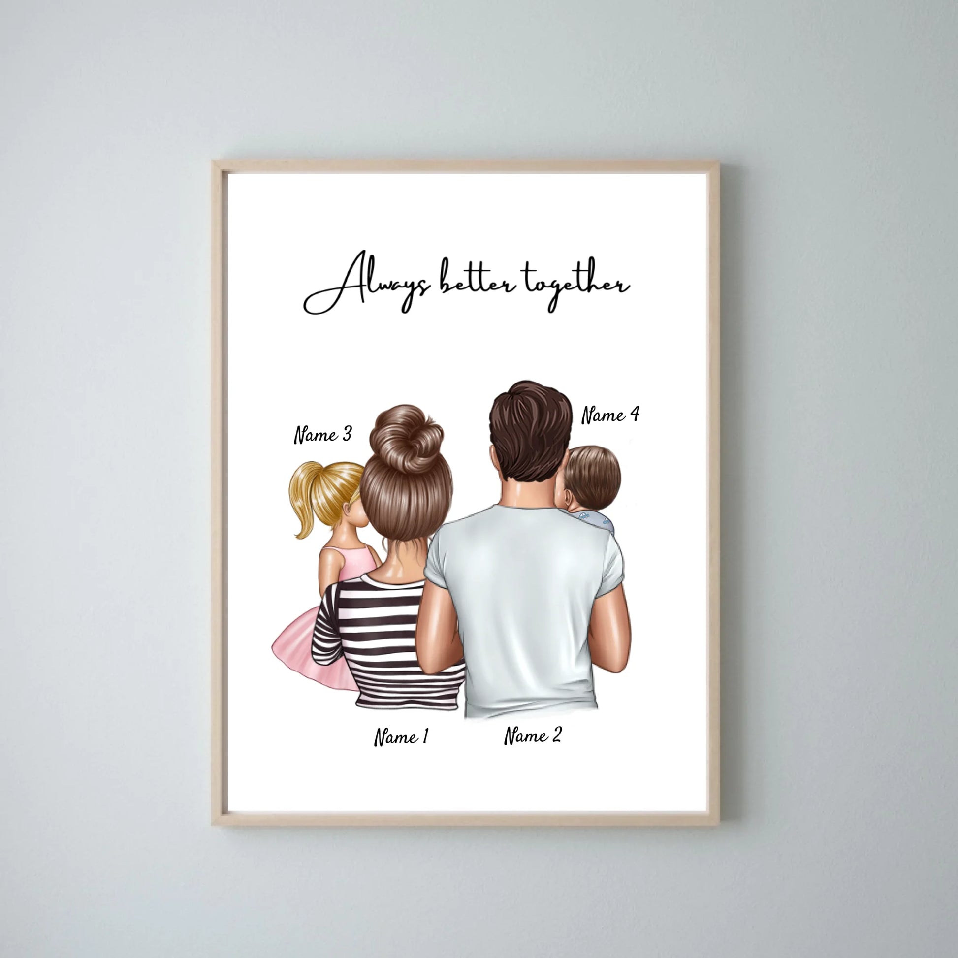🇩🇪 Dein personalisiertes Happy Family Poster mit 1-4 Kindern wird für dich sofort nach der Bestellung in Deutschland gestaltet und bedruckt. Poster enthält keinen Rahmen.