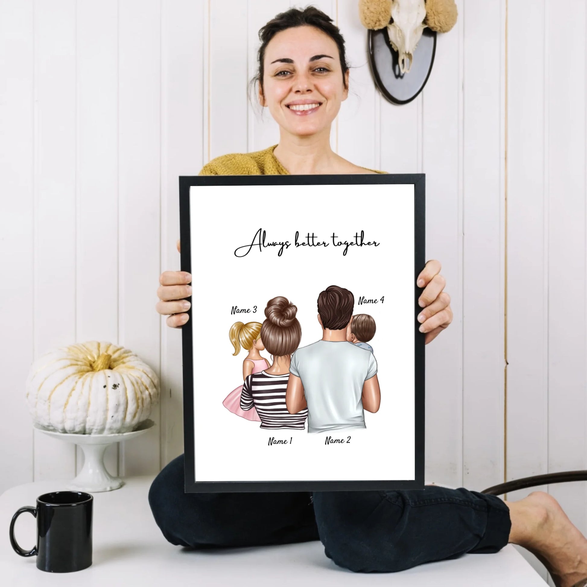 🇩🇪 Dein personalisiertes Happy Family Poster mit 1-4 Kindern wird für dich sofort nach der Bestellung in Deutschland gestaltet und bedruckt. Poster enthält keinen Rahmen.