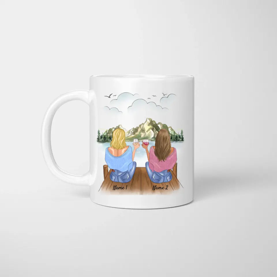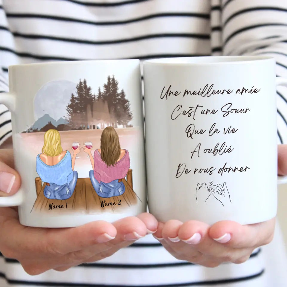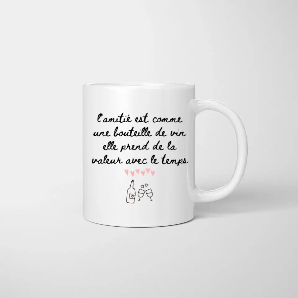 L'amitie est comme une bouteille de vin elle prend de la valeur avec le temps - Mug personnalisé (2-4 amies)