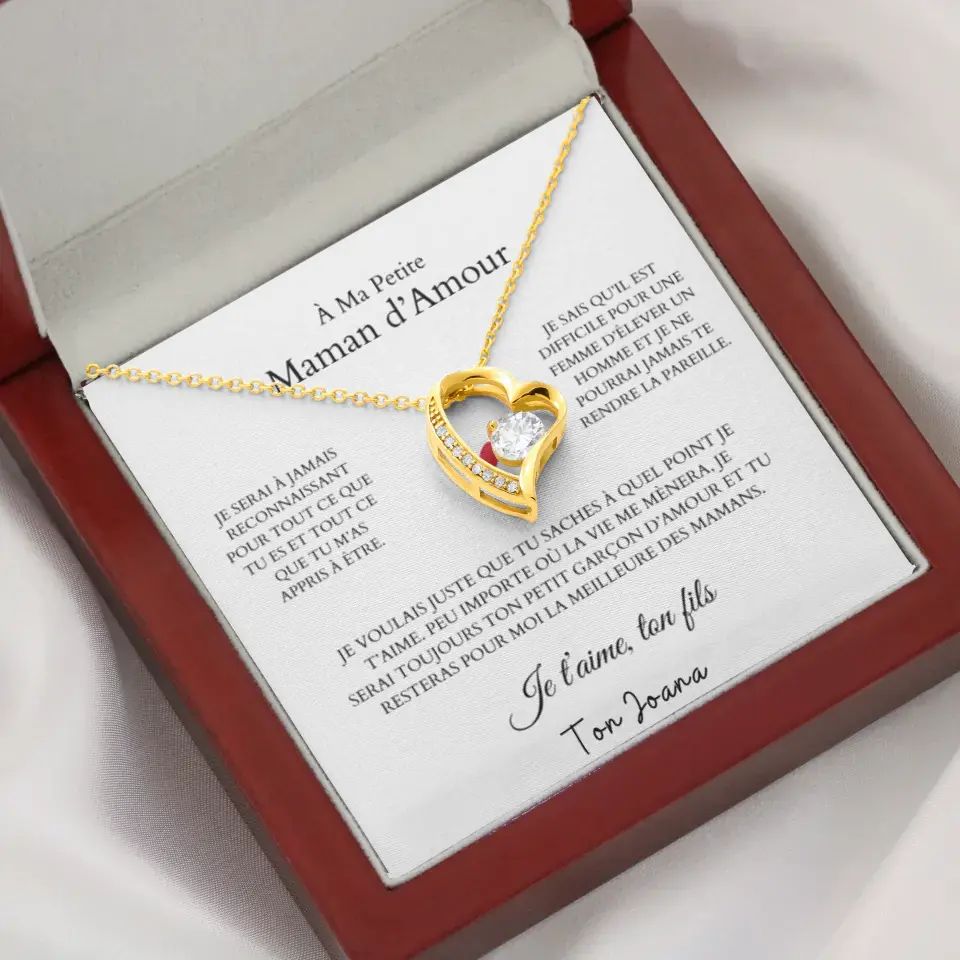 À Ma Petite Maman d'Amour - Collier avec pendentif coeur & carte personnalisée