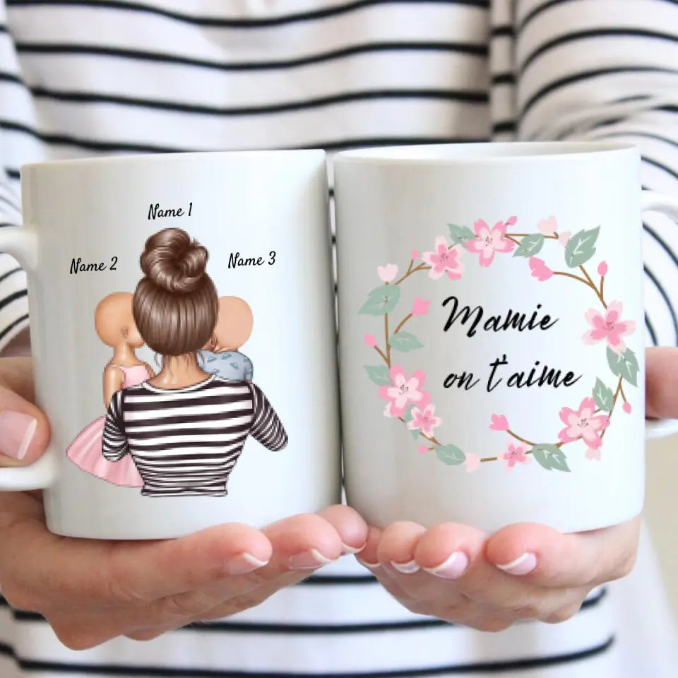 Mamie on t'aime - Mug personnalisé (1-4 enfants, adolescents)