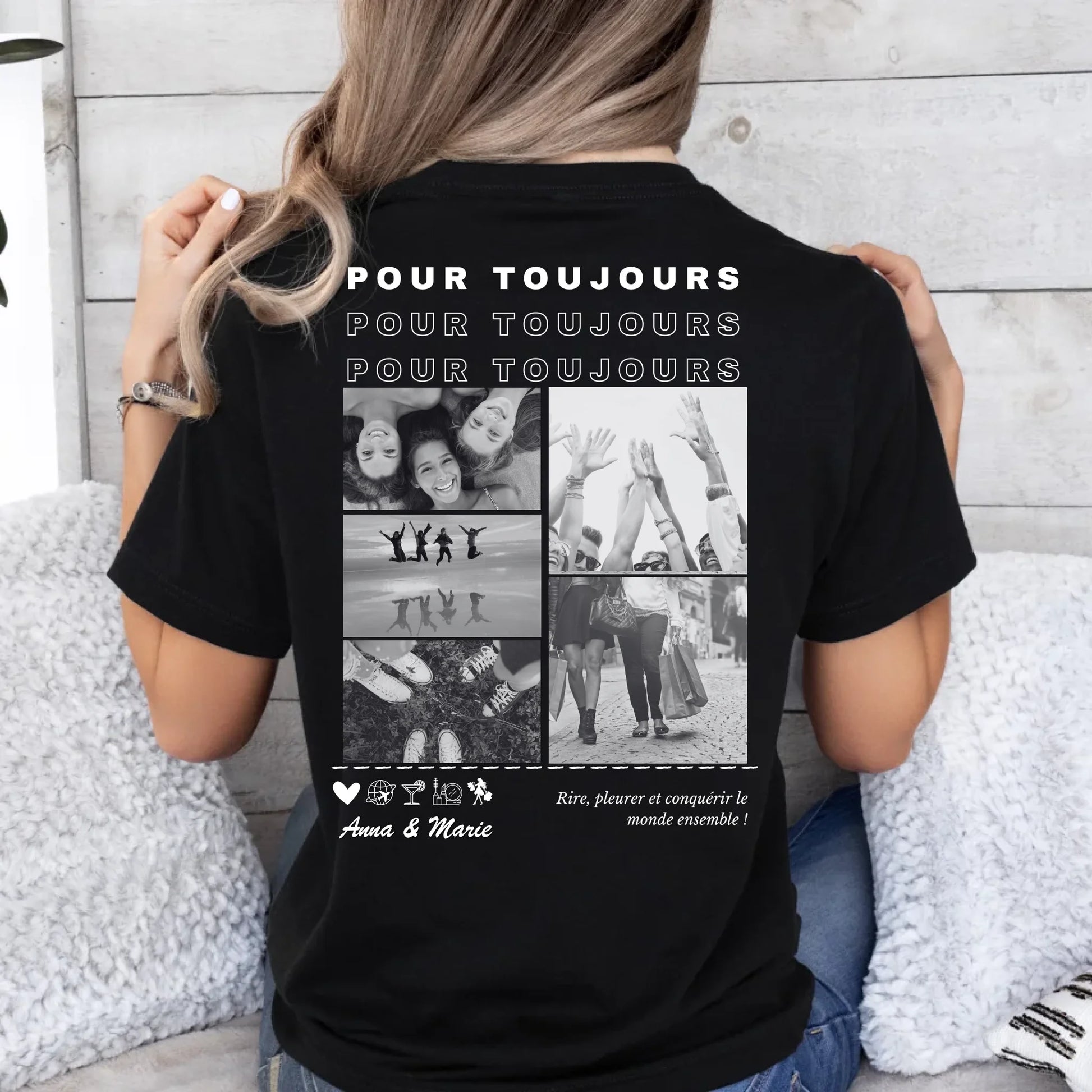 Pour toujours - Rire, pleurer et conquérir le monde ensemble - T-shirt personnalisé avec photo (100% coton, unisexe)