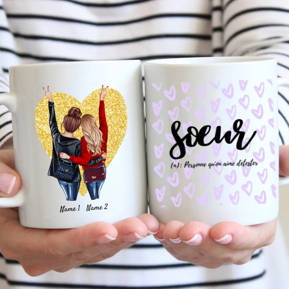 Sœurs préférées avec sacs à main - Mug personnalisé pour frères et sœurs (2-3 frères et sœurs)